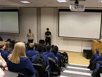 Mo, who is the England Cricket Board Performance Director, addressed the Elite Sport, Nucleus STEM and other interested students during a 1-hour compelling presentation to the full-house Lecture Theatre.