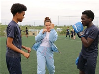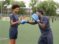 Students in the school’s Elite Sports Programme were taken aback when they were greeted by Chantelle at the beginning of what they thought would be routine football and netball training sessions. Instead, Chantelle put the students through their paces by leading a unique sparring session.