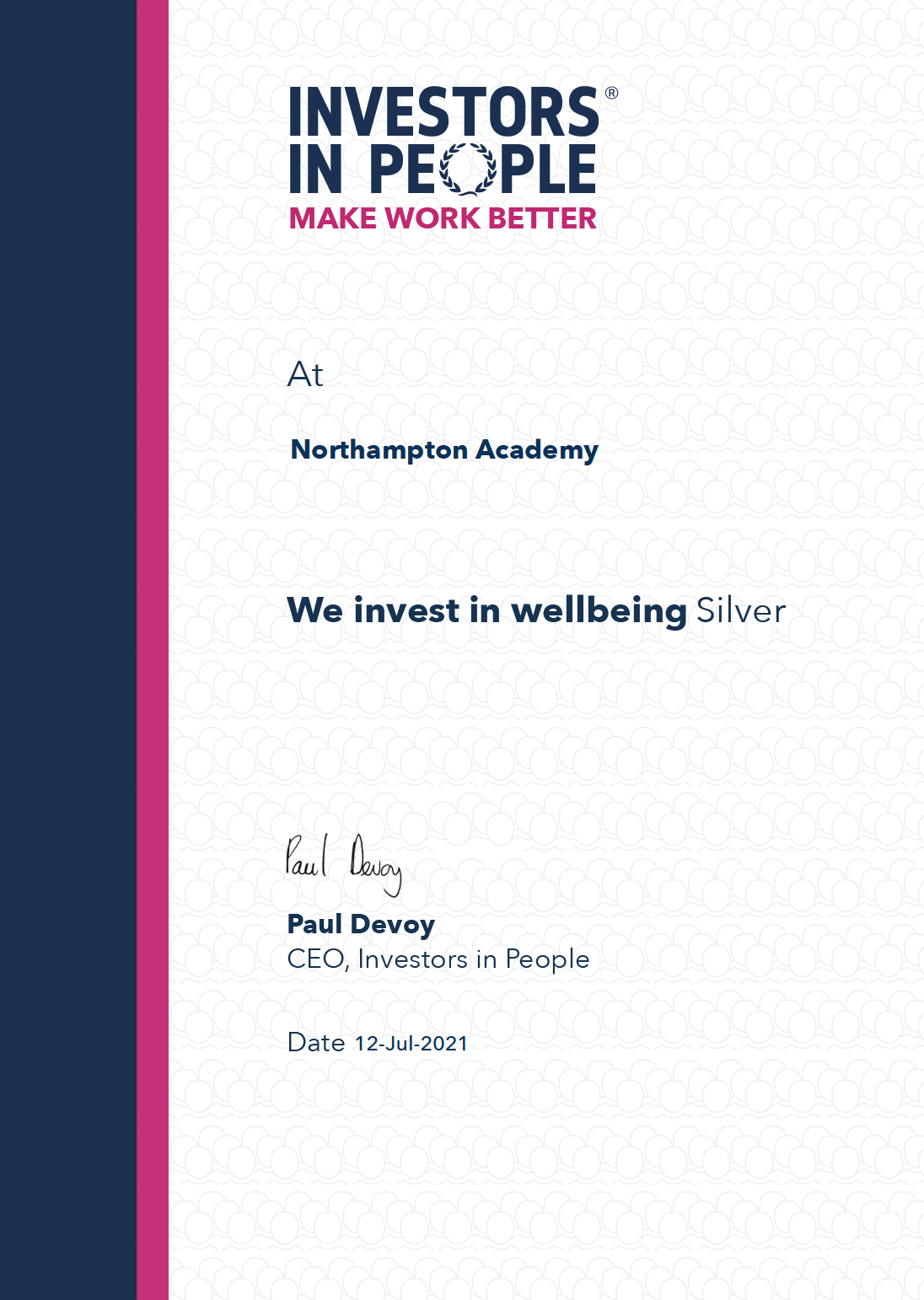 "We'd like to congratulate Northampton Academy. Silver accreditation on We invest in wellbeing is a fantastic effort for any organisation and places the school in good company with a host of organisations that understand the value of wellbeing."