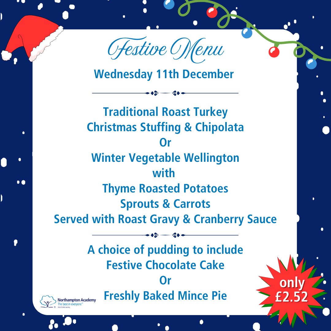 Students can enjoy a Christmas Lunch at the Academy on Wednesday 11th December!