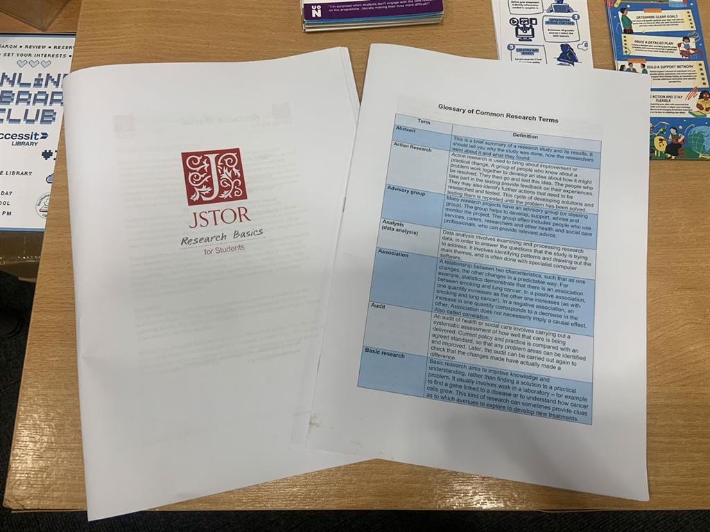 Our library has been working on raising the profile of taught research skills in our school. Research skills include the ability to find suitable sources and use them in academic work. These skills are crucial for academic success and transferable to many other areas of life, including citizenship, the workplace and health literacy. Supporting these skills in our young people means that they will be better equipped for independent living, study and work after secondary education.