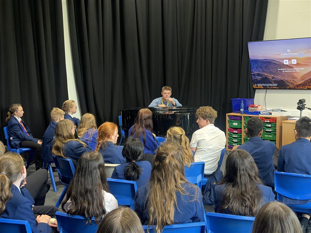 During his visit, Joel shared his personal journey and gave students a behind-the-scenes look at the songwriting process. He explored how songs are created from initial ideas through to finished pieces, as well as how artists can add their own unique style to existing music.