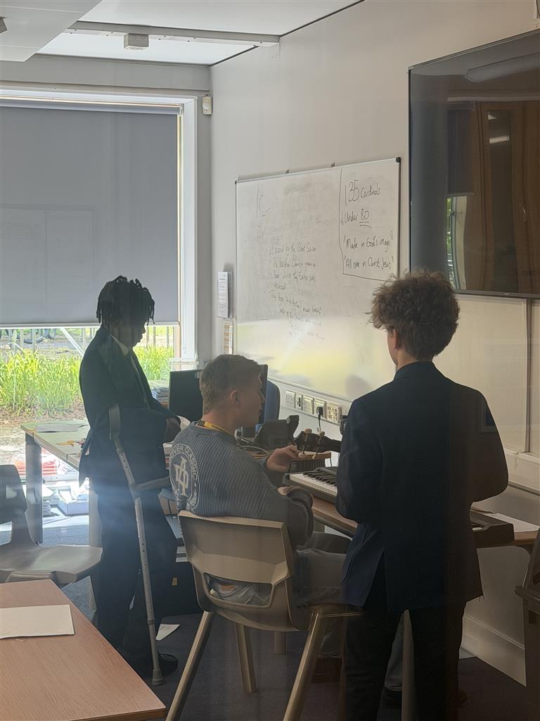 Students then had the exciting opportunity to work collaboratively in groups to begin creating their own original songs. Guided by Joel, they explored different musical ideas, experimented with styles, and developed the foundations of their own compositions.