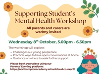 You are warmly invited to a Parent Workshop on Mental Health and Wellbeing, led by the Mental Health Support Team (MHST). This practical session will give you strategies and advice to support your child’s emotional health.