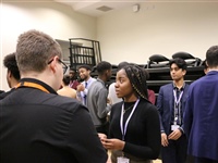 Students practised their networking skills by participating in a mock networking scenario.