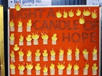 Our theme was "One Day When We Realise That Our Differences Unite Us". At lunchtime on Thursday, 27th January, we held a Gallery Walk and Memorial Flames Campaign in the courtyard.
