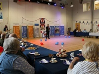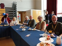 The main event of the day, with the help of our fantastic Parent Ambassadors, came after school when 29 guests joined us for afternoon tea in the hall. On the guest list were residents from Abington Lodge, Elizabeth House, and the parents of staff members. They joined together to celebrate with our resident royals, enjoying live music from Meshack and Nikolas and watching dance from our champion baton twirler Remaya, whilst Parent Ambassadors and staff served up the afternoon tea.