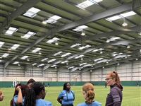 Students receive coaching from Red Roses players at the Northampton Saints Rugby Festival
