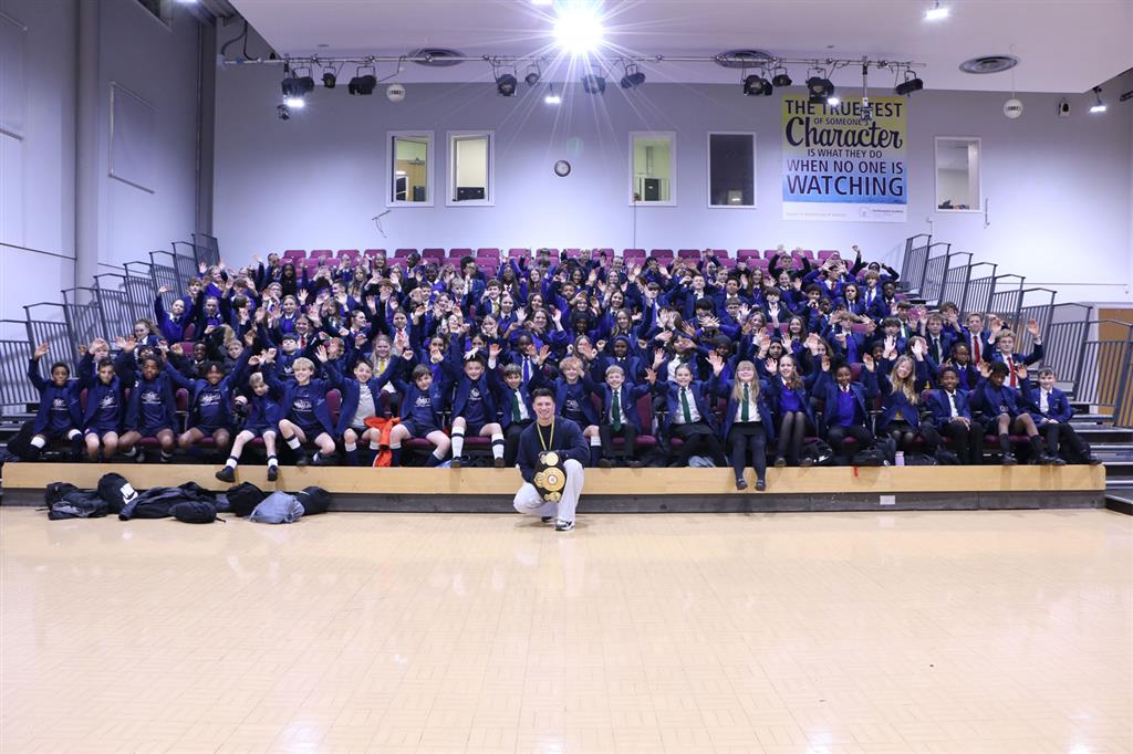 The students were gripped by footage from his win over Gerome Warburton in May this year and the details of his training camp in the build-up to the fight.